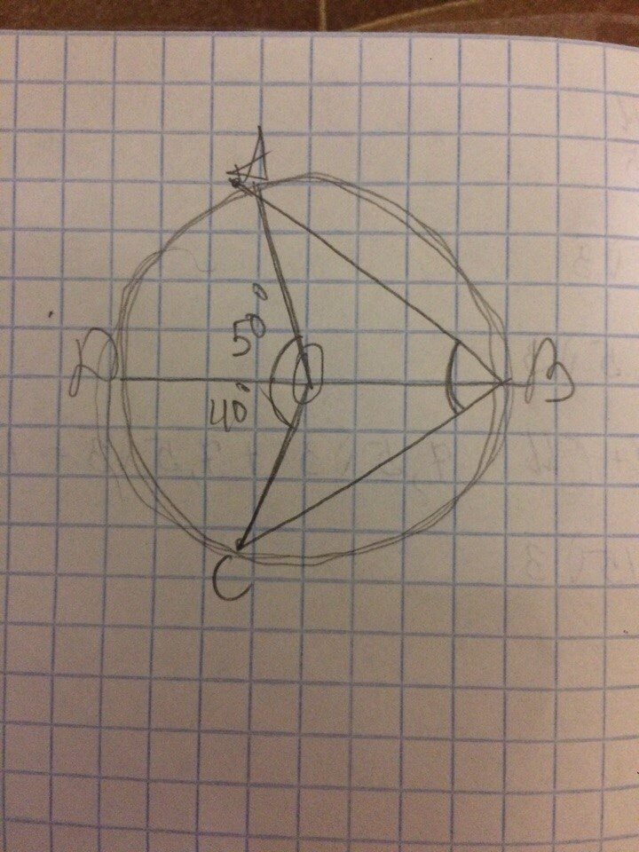 уголBOC=180-40=140°,значит дуга CB рпвна 140°