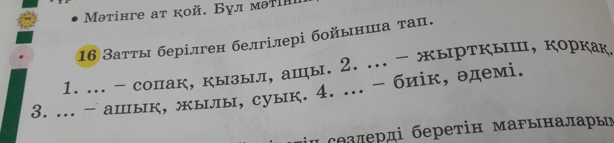 1)қызыл бұрыш 2)қоян 3)су 4)тау