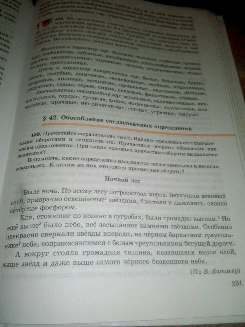 ВЕРХУШКИ вековых елей,/ призрачно освещённые звёздами/, блестели и дымились, словно натёртые фосфором.