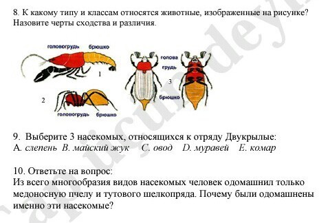 10. потому что пчел и шелкопрядов люди используют для своей выгоды( получают мед (от пчел) и шелковые нити(от шелкопрядов) для того чтобы легче собирать мед и получать большой урожай эти виды одомашнили