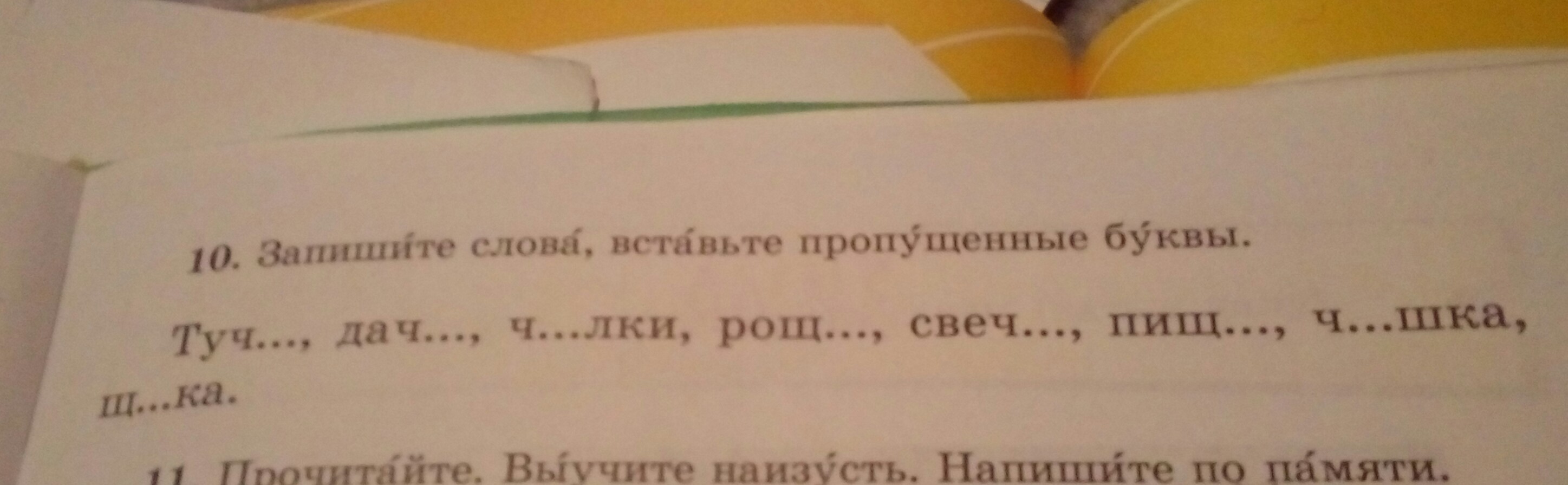 Туча,дача,чулки,роща,свеча,пища,чашка,щука.