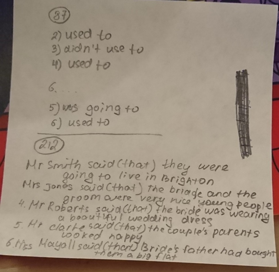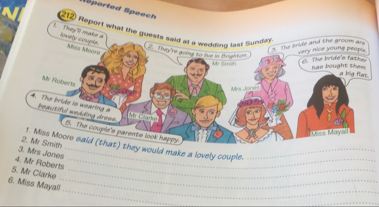 6) Miss Mayall said (that) the bride's father has bought them a big flat.