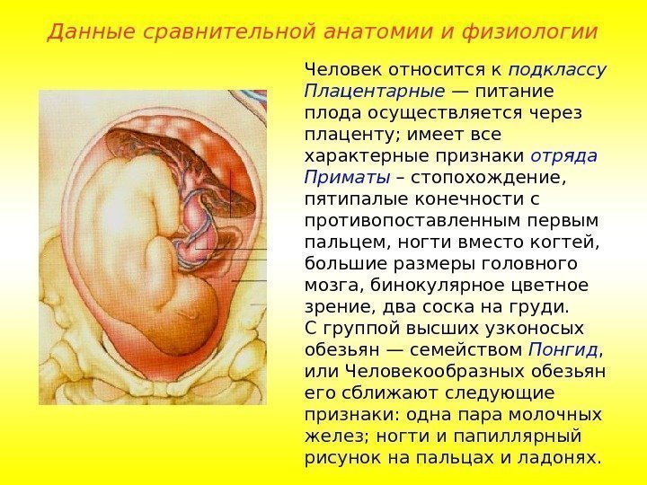 4. Человек относится к подклассу "Плацентарные", так как питание плода осуществляется через плаценту.