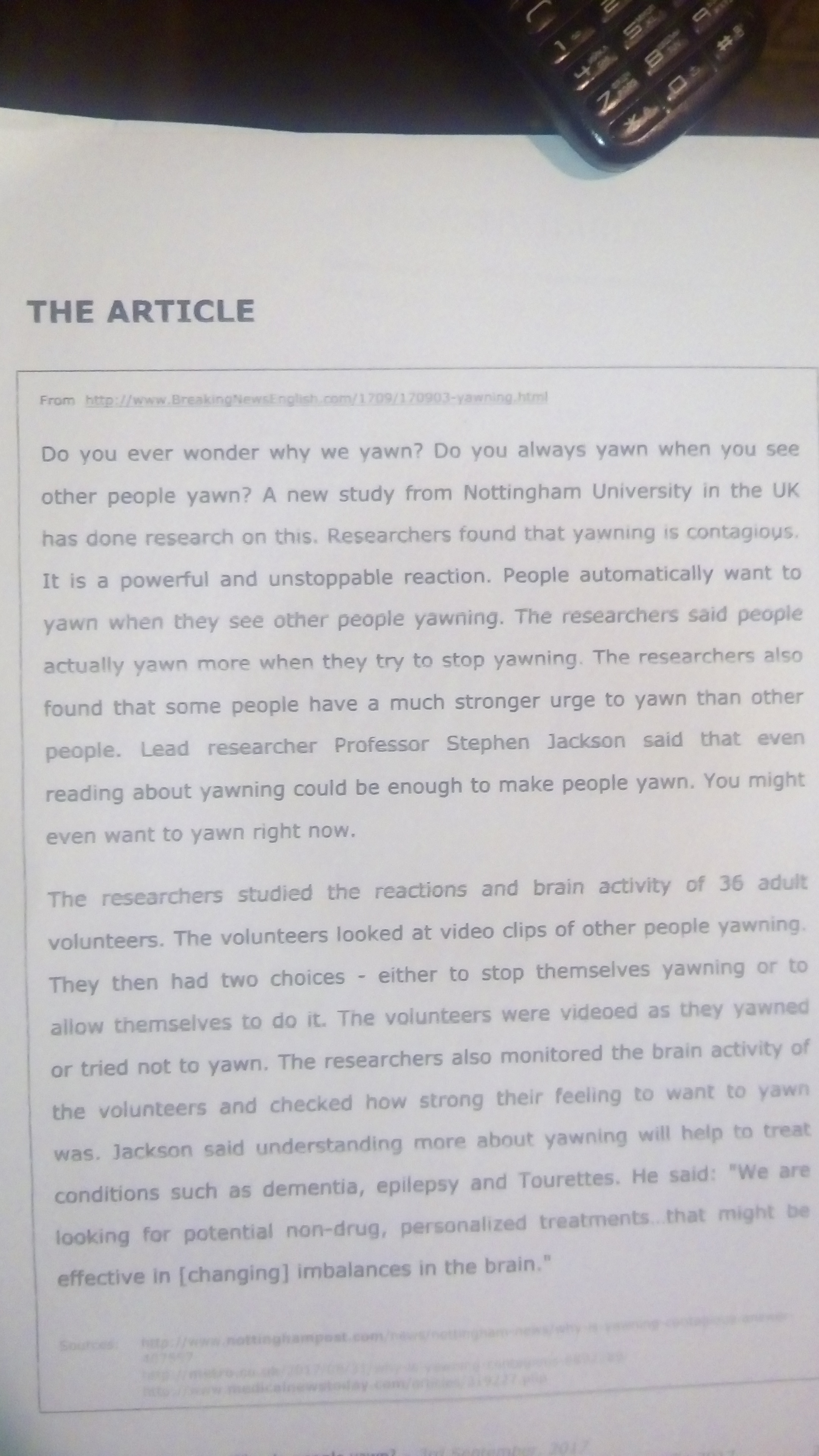 Вы когда-нибудь задумывались, почему мы зеваем? всегда ли вы зеваете, когда видите, что зевают другие люди? Ноттингемский университет в Великобритании провел исследование данного вопроса. Исследователи обнаружили, что зевота - заразная. Это сильная и непреодолимая реакция. Люди автоматически хотят зевнуть, когда видят, какзевают другие люди. Исследователи сообщили, что люди на самом деле зевают больше, когда они пытаются перестать зевать. Исследователи также обнаружили, что некоторые люди имеют гораздо более сильное желание зевать, чем другие . Ведущий исследователь профессор Стивен Джексон сказал, что достаточно даже просто читать о зевоте, чтобы люди зевали. Возможно, вы даже захотите зевать прямо сейчас.