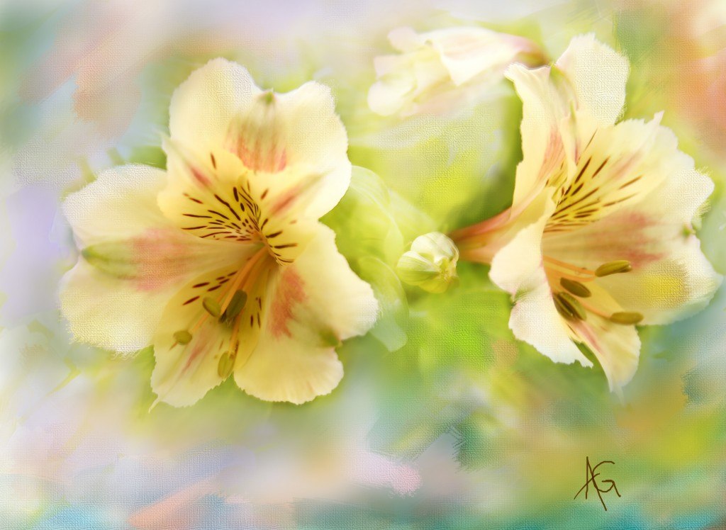 цветы, к примеру. лилия, сирень, гиацинт, роза, тюльпан, ромашка, гербера... можешь изобразить букет. или что лучше- маковое поле (: