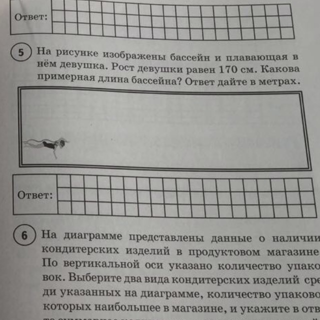 Померяй линейкой длину девушки. Эти сантиметры отмеряй до конца бассейна. Отмерянные сантиметры умнож на рост девушки,то есть на 170 и тем самым вычтешь длину бассейна.