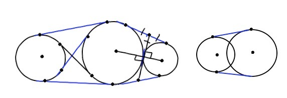 Можно провести четыре прямых, касающихся двух данных окружностей, если у них нет общих точек.