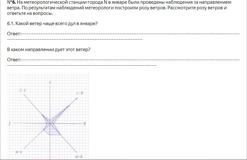 №6. На метеорологической станции города N в январе были проведены наблюдения за направлением ветра. По результатам наблюдений метеорологи построили розу ветров. Рассмотрите розу ветров и ответьте на вопросы.