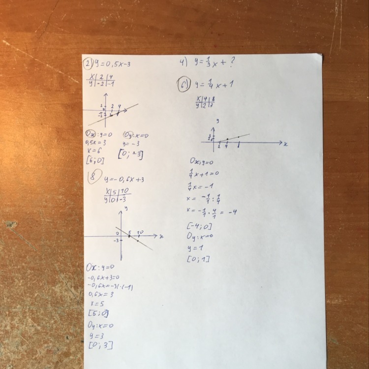 2)у=0,5x-3. 4)y=1/3x+. 6)y=1/4x+1. 8)y=-0,6x+3. ПОЖАЛУЙСТА ПОМОГИТЕ!