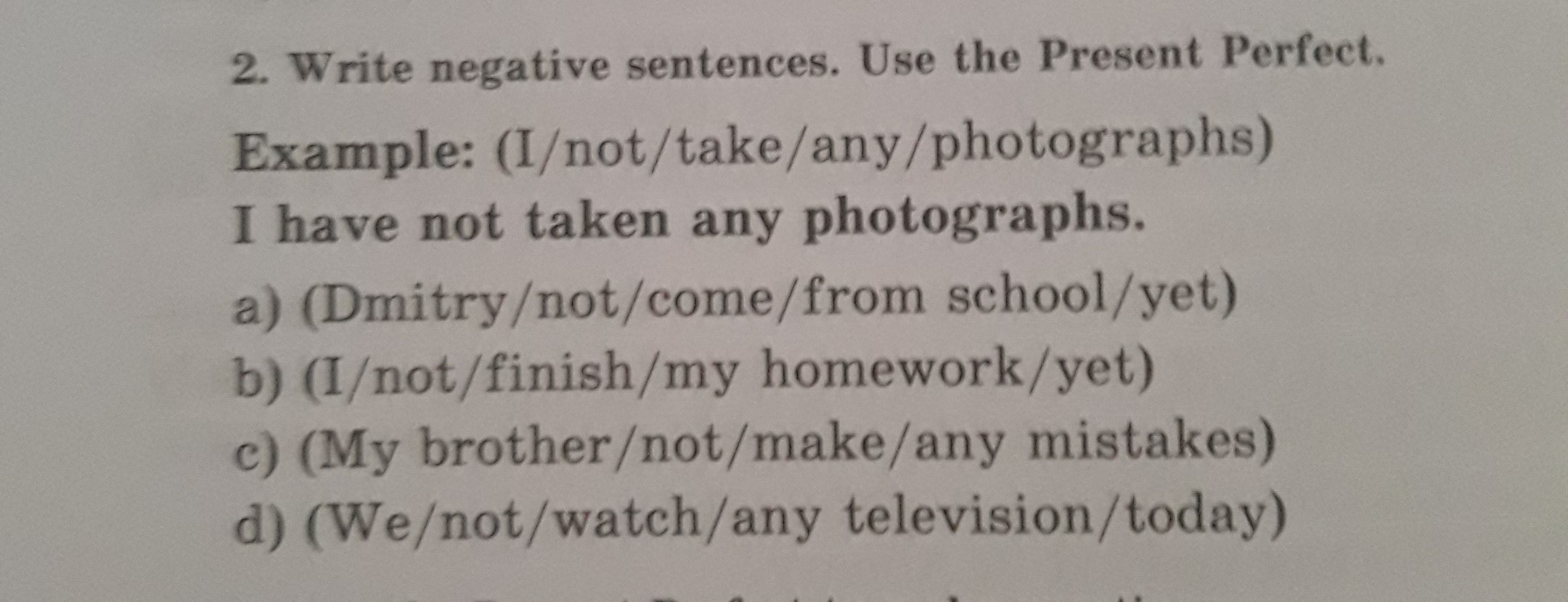 I haven't finished my homework yet.