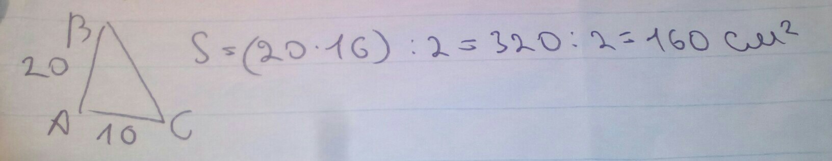 катет прямоугольного треугольника равна 20 см а его проекция на гипотенузу 16 см найдите площадь треугольника