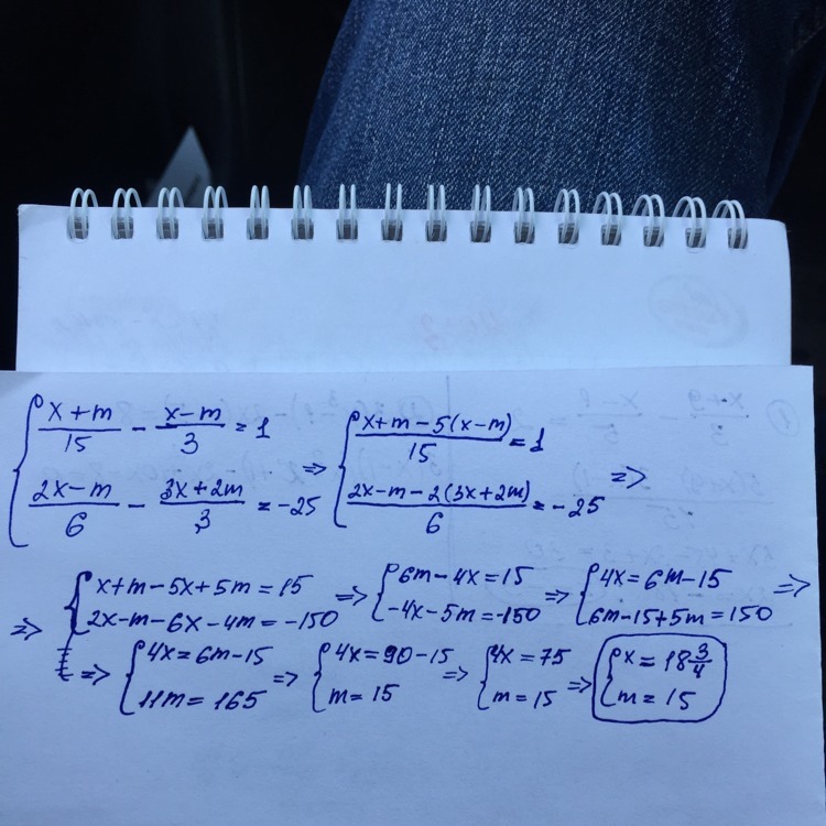 { x + m - 5(x -m) = 1 * 15