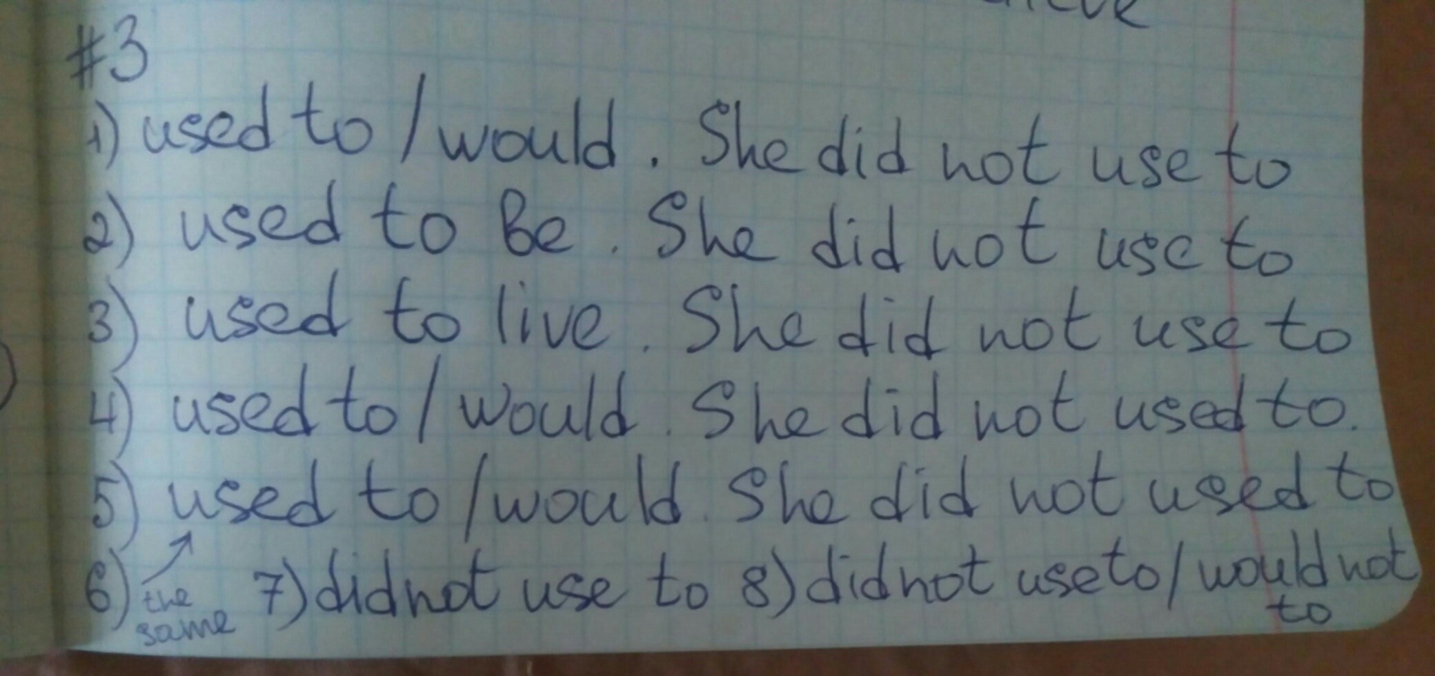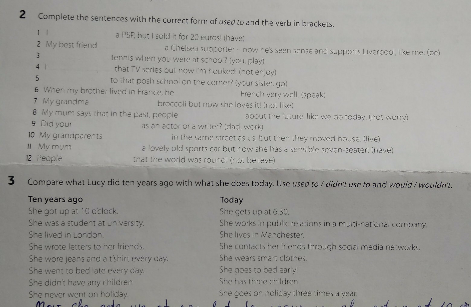 6) Lucy used to / would go to bed very late every day. She didn’t use to / wouldn’t go to bed early.