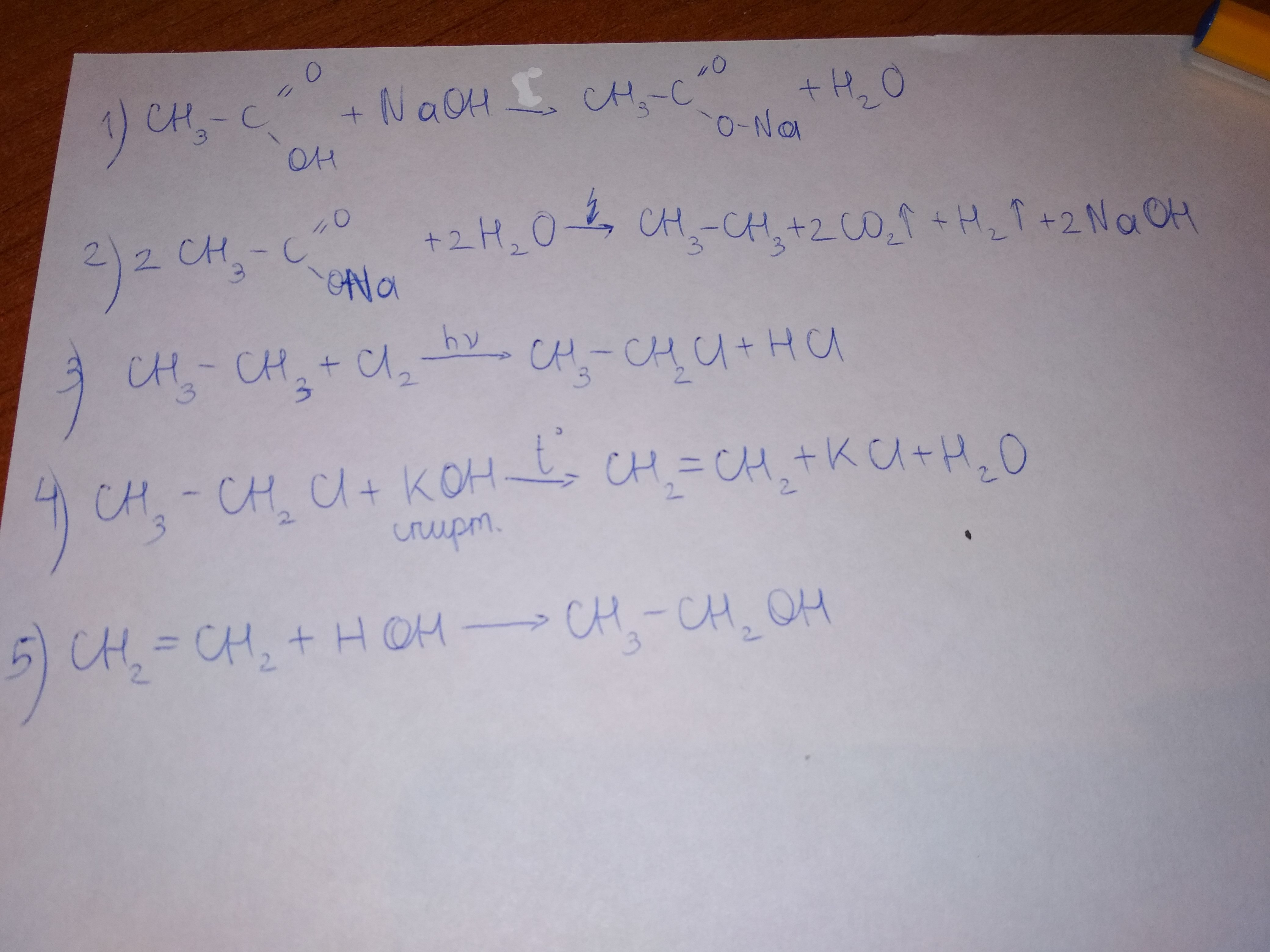 Х1-(NaOH)-CH3COONa-(Электролиз)-С2Н6-(Cl2,hv)-Х2-(KOH(спирт.),t)-Х3-С2Н5ОН
