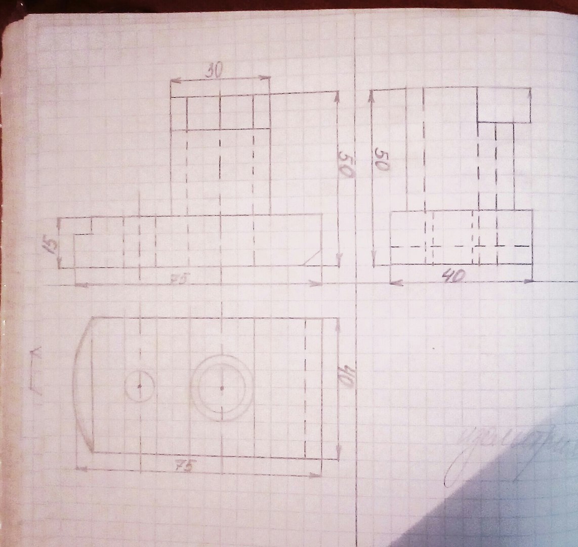 Обратите внимание на нанесение размеров и повторять их не нужно на каждом виде.