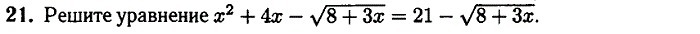 x² + 4x - √ ( 8 + 3x ) = 21 - √ ( 8 + 3x )