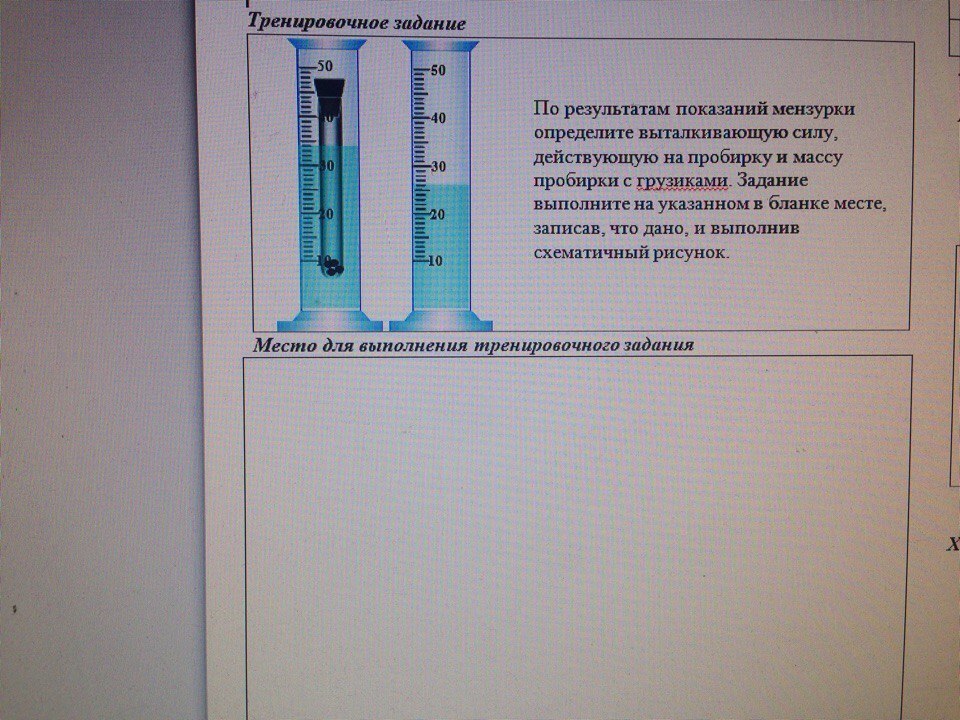 Объем в левой мензурке