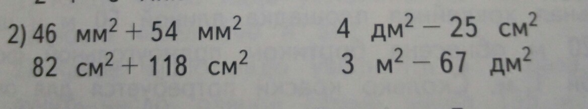 46 м в квадрате плюс 54 м в квадрате 82 см в квадрате плюс 118 см в квадрате 4 дм в квадрате минус 25 см в квадрате 3 м в квадрате минус 67 дм в квадрате