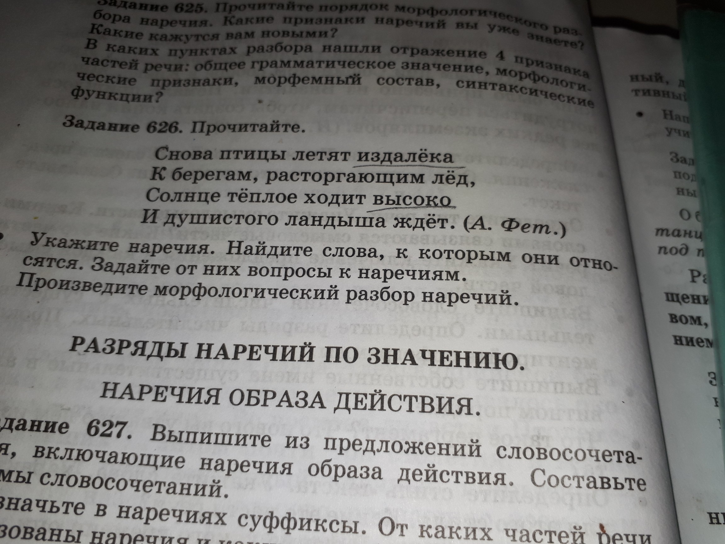 наречия отвечают на вопрос как: высоко, издалека. ходит как? высоко, летят как? издалека