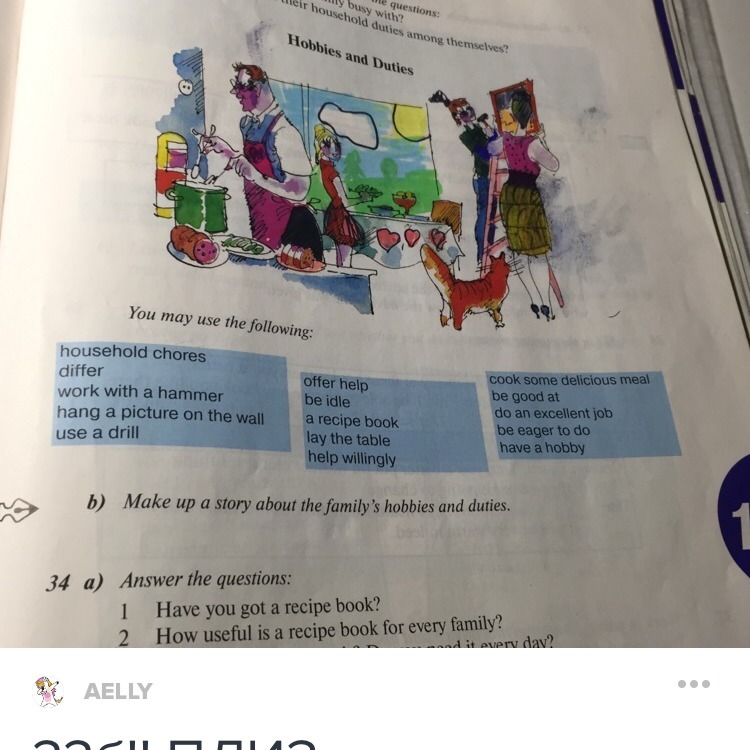 In this picture I see four people and 1 cat.The picture shows a man preparing food.Next to the sausage pan and plate. Behind him is a man with a woman who had a picture.A man climbs the stairs, and a woman holding a picture. Behind the woman stands a beautiful red cat.He's looking after them.Also there is a little girl, she looks out the window.And that the puts on the table.She's wearing a red skirt.I like this picture