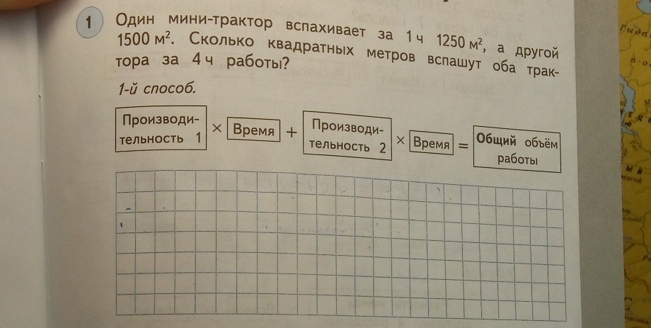 1250*4+1500*4=11000 (1250 производительность 1 трактора, 4 часа общее время работы,1500 производительность 2 трактора)