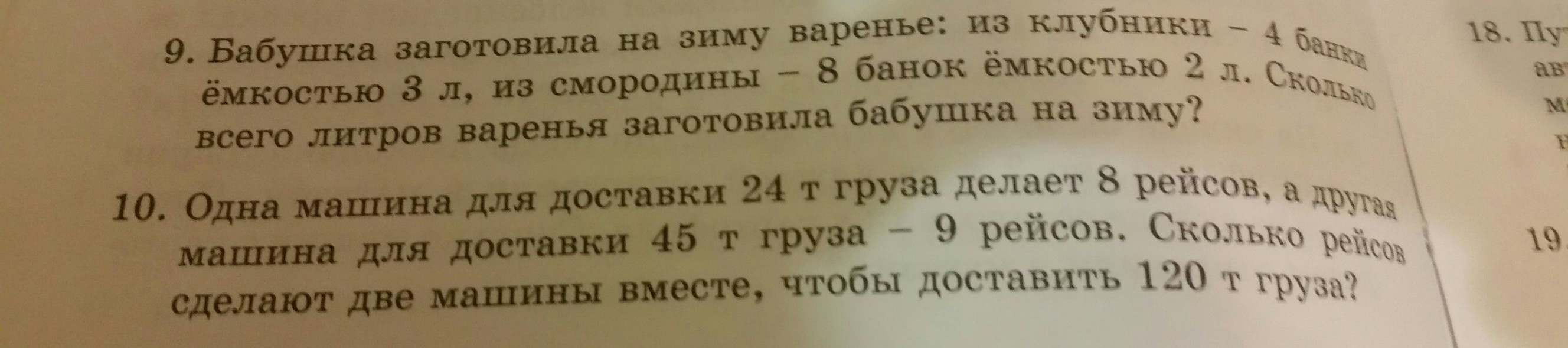 1) 24:8=3 (т) 1рейс 1 машина 2) 45:9=5 (т) 1рейс 2 машина 3)3+5=8(т) 1и2 4)120:8=15(р) Ответ: 15 рейсов
