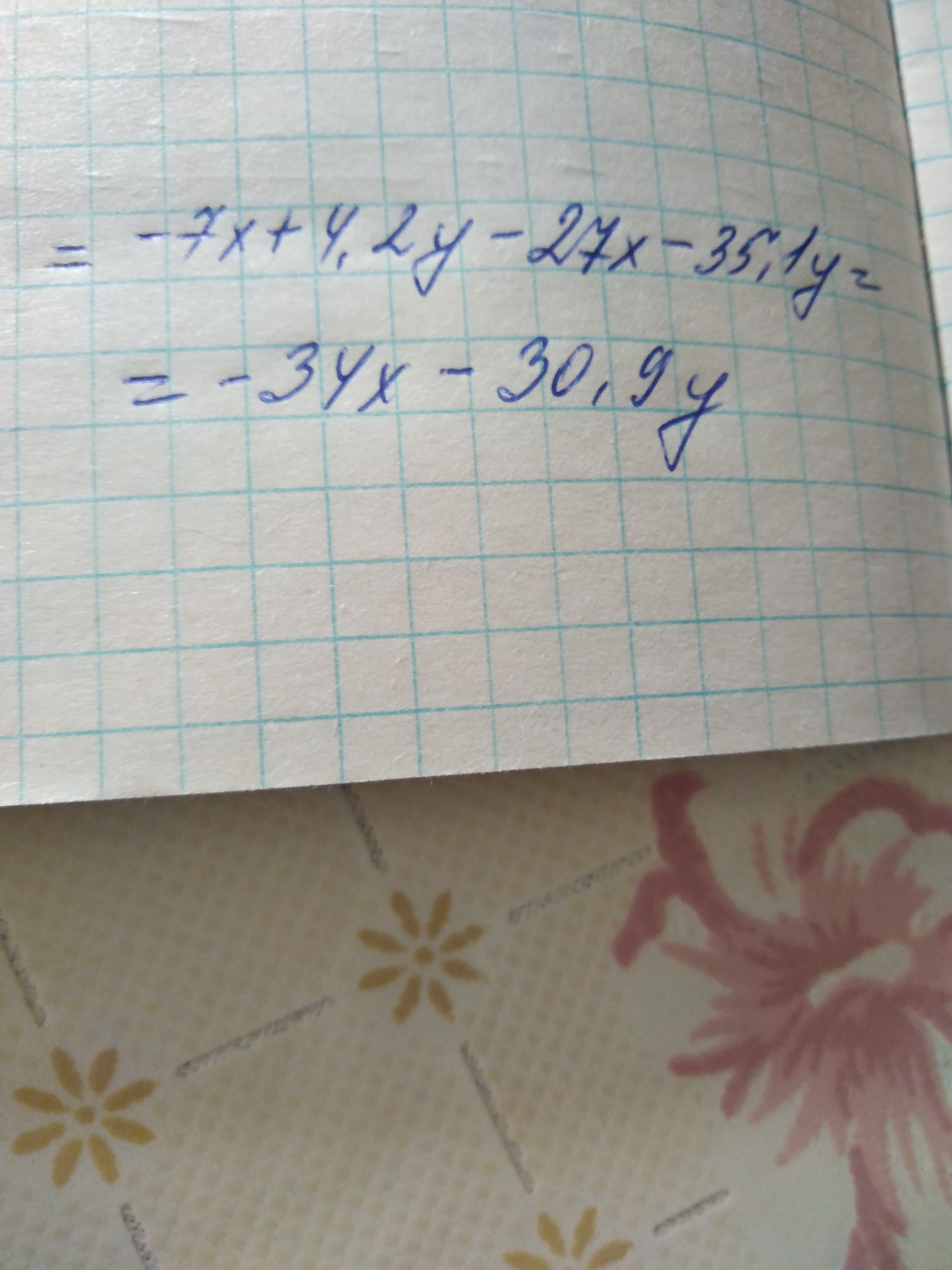 б)-1,4*(5х-3у)+4,5*(-6х-7,8у)=-7х+4,2y-27х-35,1y=-34х-30,9y