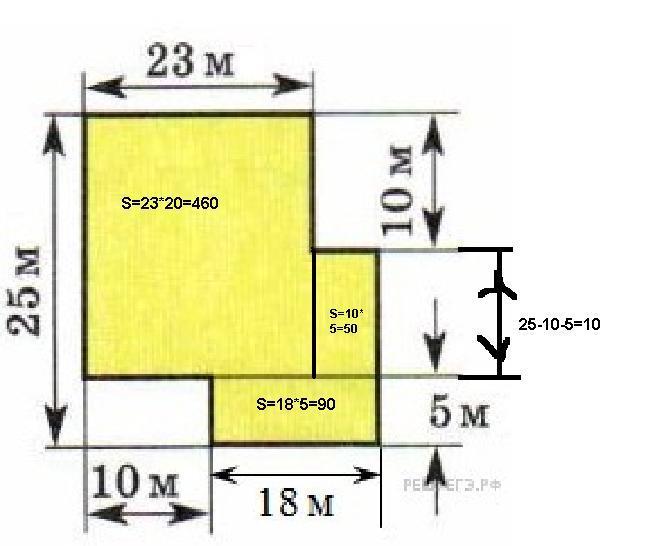 ну и потом суммируем все получившиеся площади. получается 460+90+50 = 600 м²