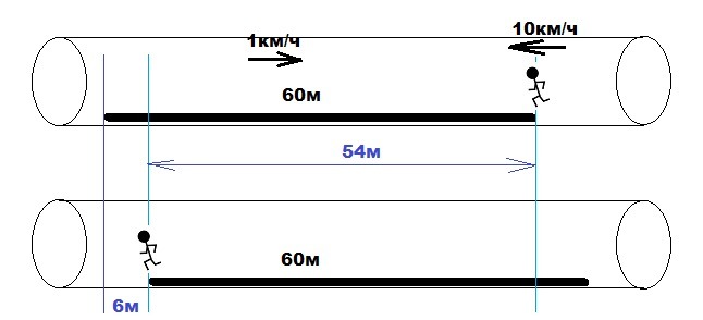 Змей Василиск длиной 60 м спросонья ползёт по трубе со скоростью 1 км/ч. Навстречу змею по этой трубе бежит Гарри Поттер со скоростью 10 км/ч, опаздывая на урок по зельеварению. Гарри вскочил на змея и побежал по нему дальше (при этом оба не меняли своей скорости). Сколько времени (в секундах) потеряет Гарри из-за того, что он бежал по ползущему змею, а не просто по трубе, если известно, что он пробежал всего змея? Ответ дайте в виде десятичной дроби.
