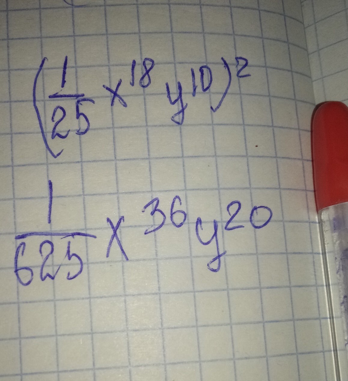 Представив выражение 1 двадцатьпятая x в 18 степени y в 10 степени в виде квадрата одночлена, получим: