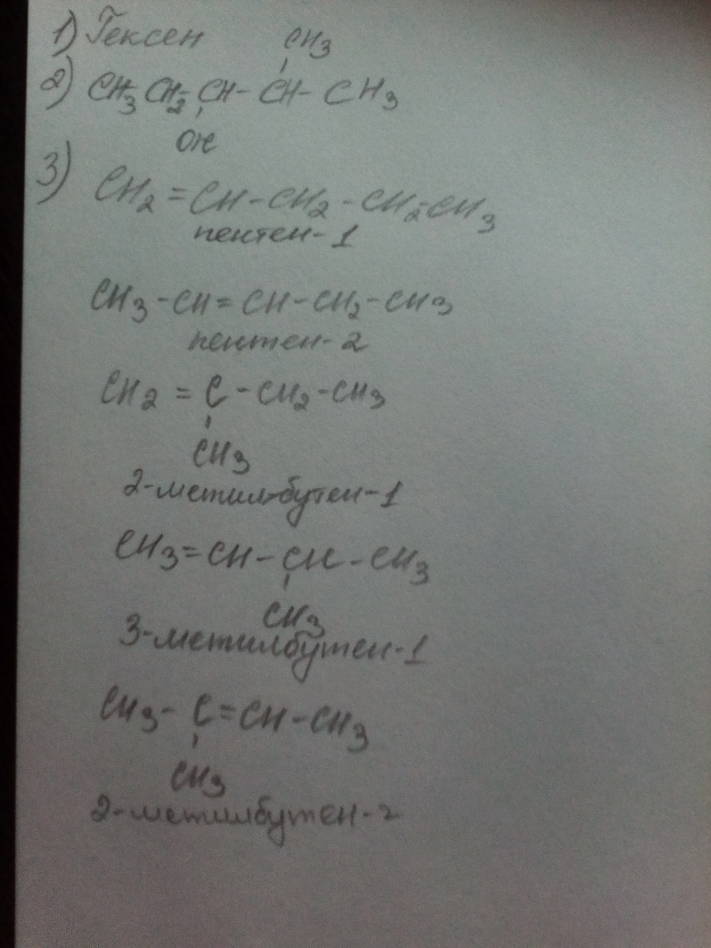 3)Структурные формулы всех возможных изомеров углеводорода пентена-1
