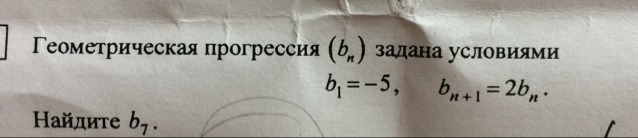 Это не геометрия, если чё. А так пользуешься формулой bn=q^(n-1)*b1. У тебя b1 известно, а q равна 2 из второго уравнения. Теперь реши.)))