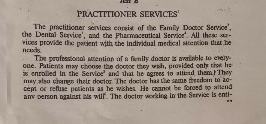 УСЛУГИ ДЛЯ ПРАКТИКОВ «Услуги практикующих состоят из службы Family Doctor», «Стоматологической службы» и «Фармацевтической службы». Все эти услуги предоставляют пациенту индивидуальную медицинскую помощь, в которой он нуждается. Профессиональное внимание семейного врача доступно для всех. Пациенты могут выбрать врача, которого они желают, при условии, что он зачислен в Службу », и что он согласен присутствовать на них. Они также могут изменить своего врача. Врач имеет такую же свободу, чтобы принимать или отказывать пациентам по своему усмотрению. Он не может быть принужден к тому, чтобы присутствовать на нем против его воли ». Врач, работающий в Службе...