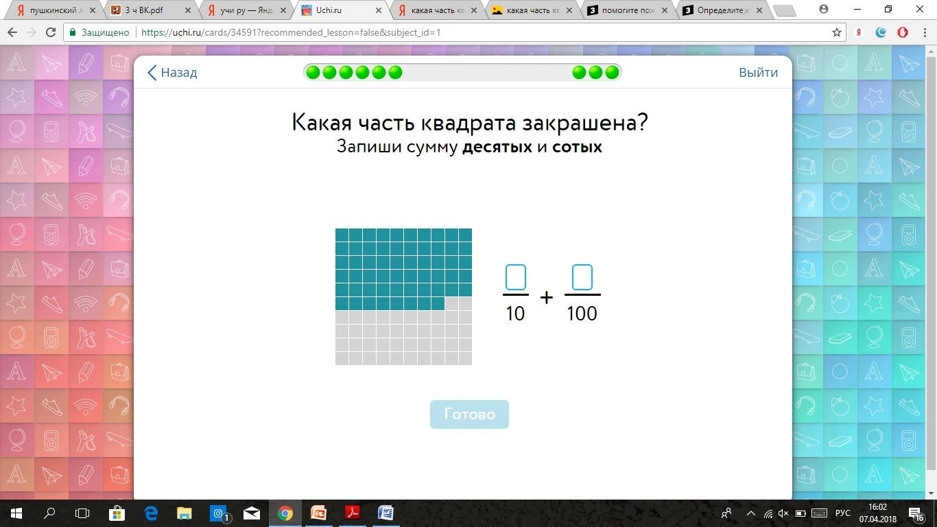 Т.к. 5 рядов по 10 и один ряд из 8 клеточек из всего квадрата (100)