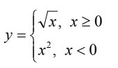 y= left { {{ sqrt{x} ,x geq 0} atop {x^2,x textless  0}} right.  \  \ y(0)= sqrt{0} =0 \  \ y(1)= sqrt{1} =1 \  \ y(-5)=(-5)^2=25 \  \