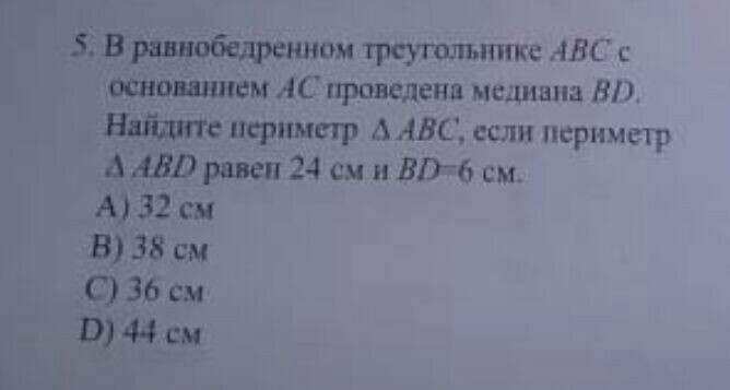 АВ+ВД= периметр АВД-ВД=24-6=18
