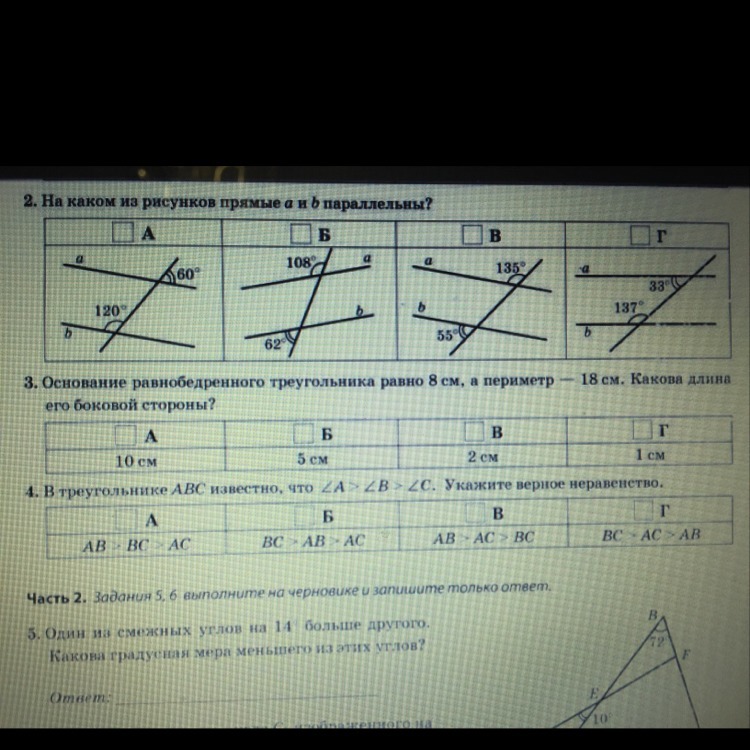 А и только А. Там сумма углов в такой ситуации должна быть 180 градусов. 120+60=180 (потому что дополнение к углу 120 градусов как раз и будет 60 градусов, а две прямая, пересекающая 2 параллельные прямые, отсекает одинаковые углы). Ни на каких других рисунках ничего подобного не выходит.