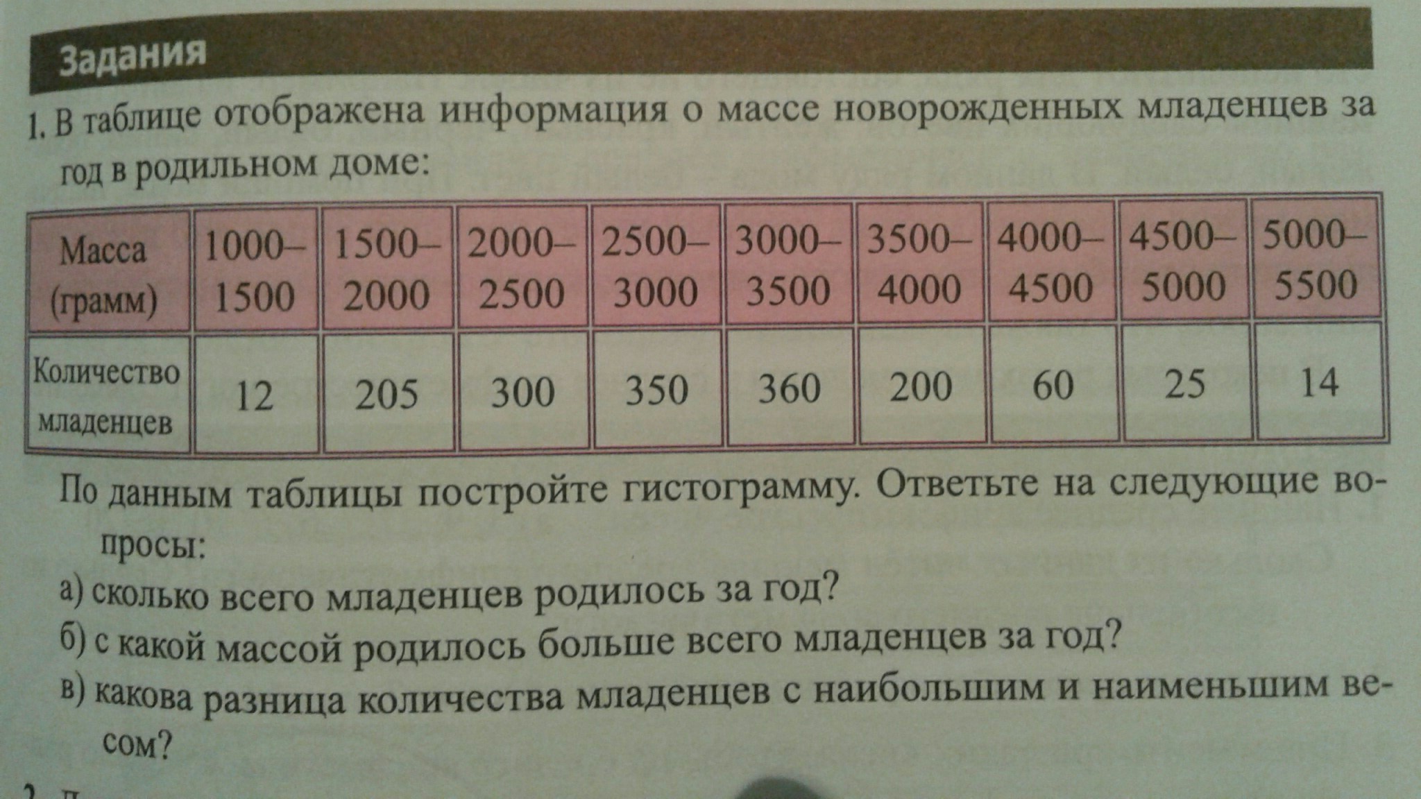 ПОМОГИТЕ ПОЖАЛУСТА СТРОЧНО В таблице отображена информация о массе нарожденных младенцев за год в родильном доме: