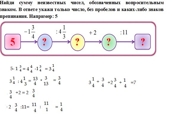 Найди сумму неизвестных чисел, обозначенных вопросительным знаком.