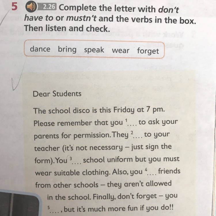 4) mustn’t bring