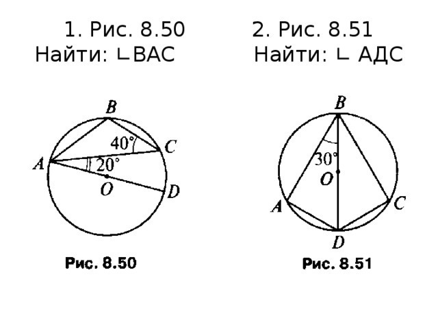 8.52) дуга вс=40, дуга сд=180-60*2=60, значит дуга всд=100, а угол вад=50