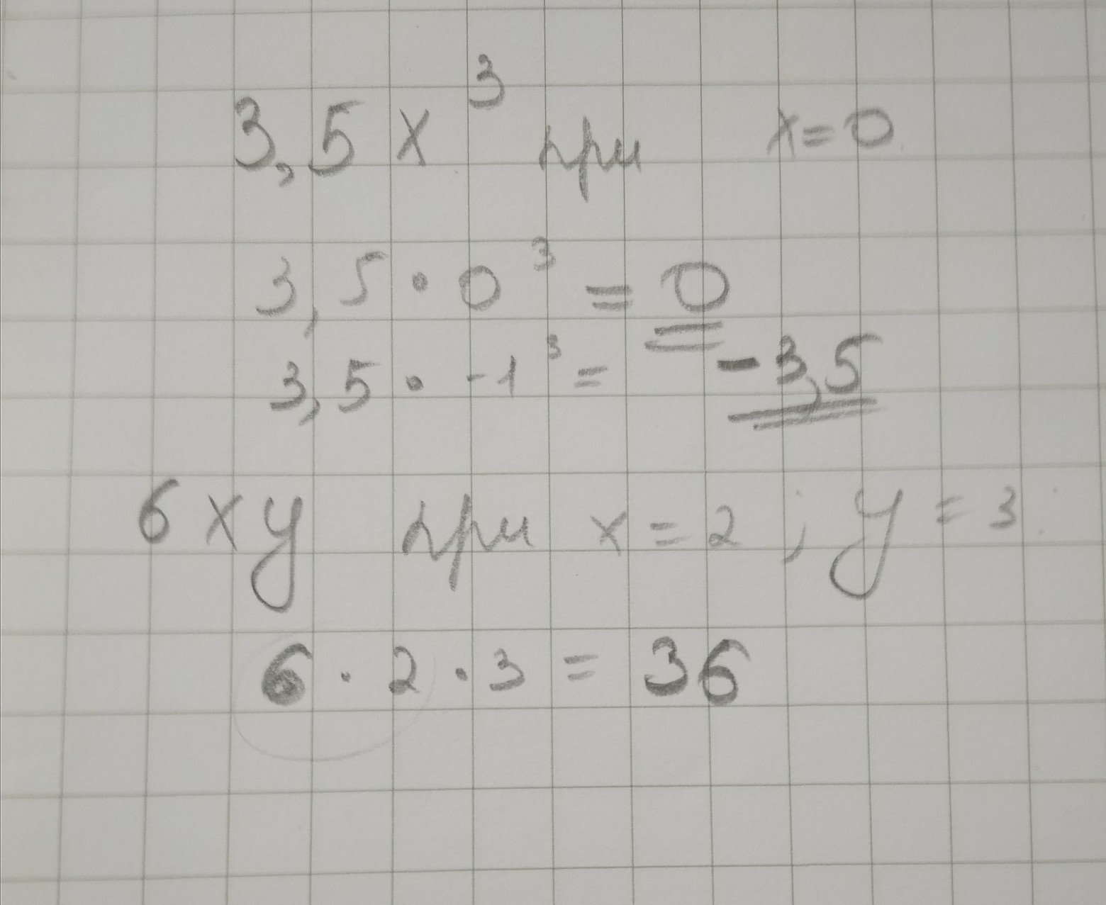 Найдите значение выражения: 3,5 x( третьей степени) при x=0; -1.