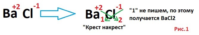 BaCl2 - так как у Бария (Ba(2+)) степень окисления 2+, а у Хлора (Cl(-1)), то они становятся типо пропорцией (рис. 1)
