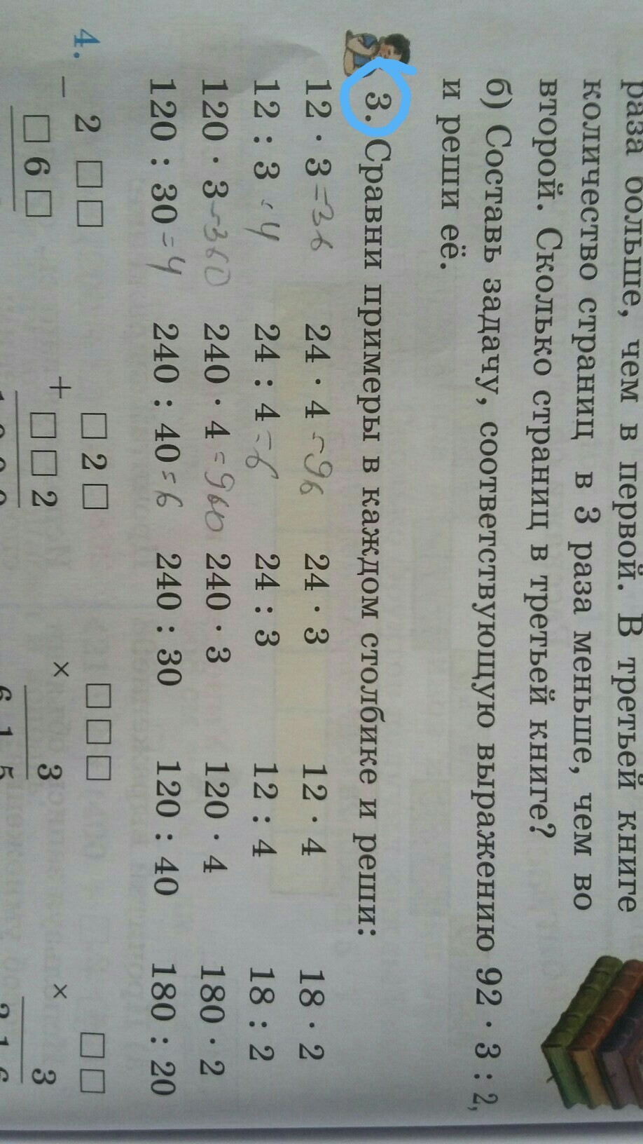 сравни примеры в каждом столбике и реши 12×3 12÷3