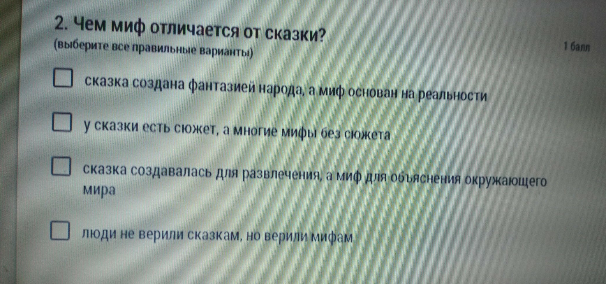 1.У сказки есть сюжет,а многие мифы без сюжета