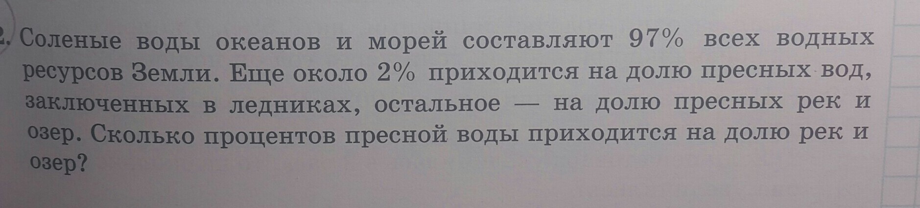3 % пресные водные ресурсы ( из них 2 процента ледники)