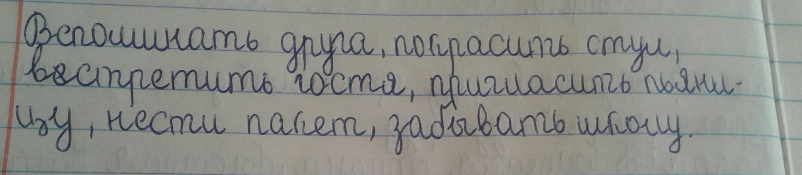 Покрасить старый стул, вспоминать лучшего друга,встретить долгожданного гостя,нести тяжелый пакет,нельзя забывать школу