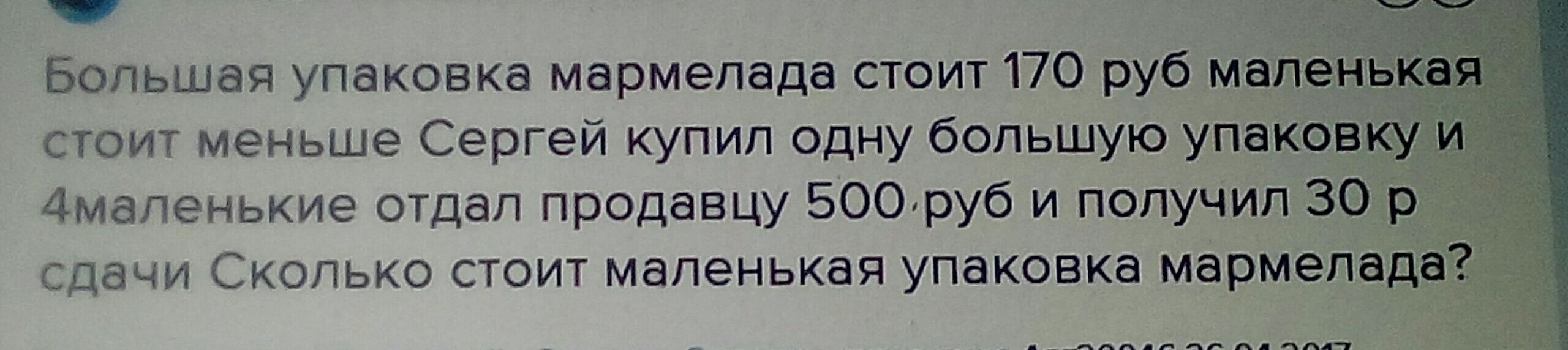 1) 500-170=330(руб) сумма без здачи и мал. упаковок