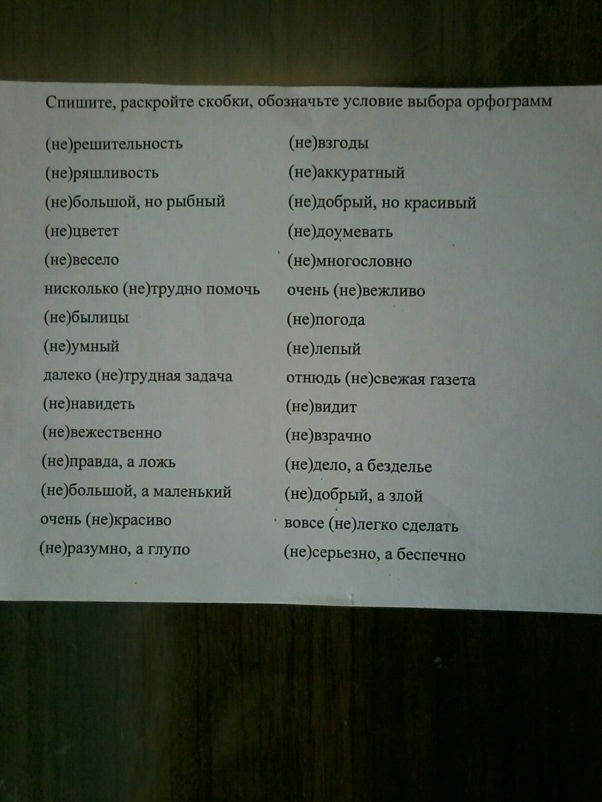 нерешительность,неряшливость, небольшой,не цветет,не весело, не трудно,небылицы,не умный,не трудная,ненавидеть,невежество,не правда,не большой,не красиво,не разумный,невзгоды,не аккуратный,не добрый,не доумевать,не многословно,