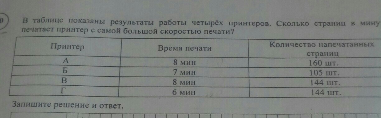 Ответ: 24 страницы в минуту печатает принтер Г с самой большой скоростью